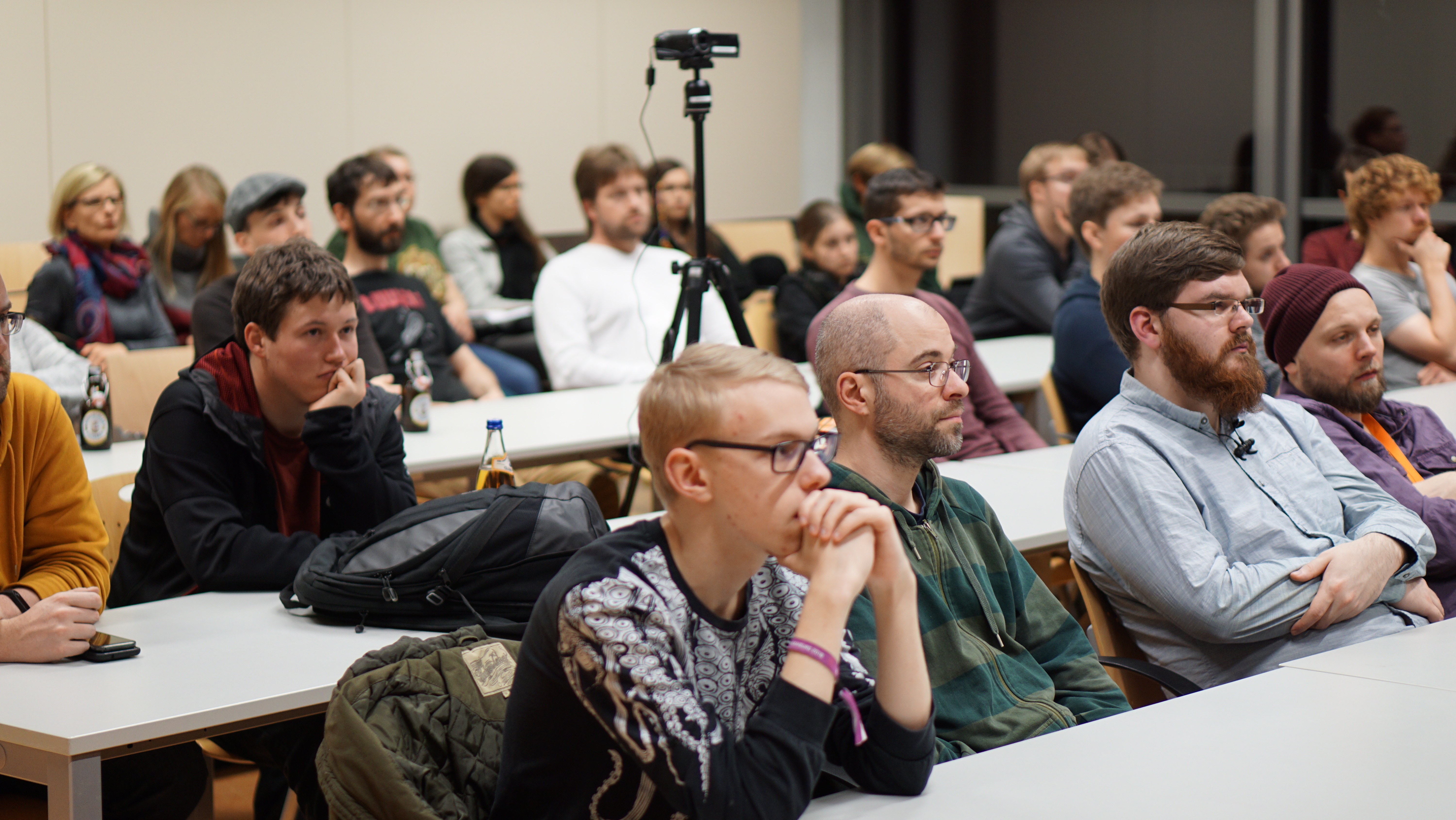 Vorträge und Workshops kann jede Person einreichen, die ihr Wissen teilen möchte. Besonders ermutigen wir Menschen, Vorträge zu halten, die zum ersten Mal einen Vortrag halten. Foto: NooK Lübeck, 2019.